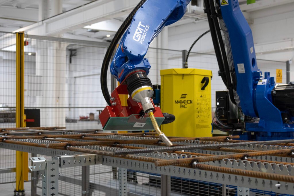 Automatiza el armado y soldadura de elementos estructurales con precisión industrial. Nuestras células robóticas reducen costes, aumentan la productividad y eliminan errores manuales, adaptándose a diferentes formatos de elementos tipo jaula (vigas, pilares, y muros) y elementos tipo parrilla.